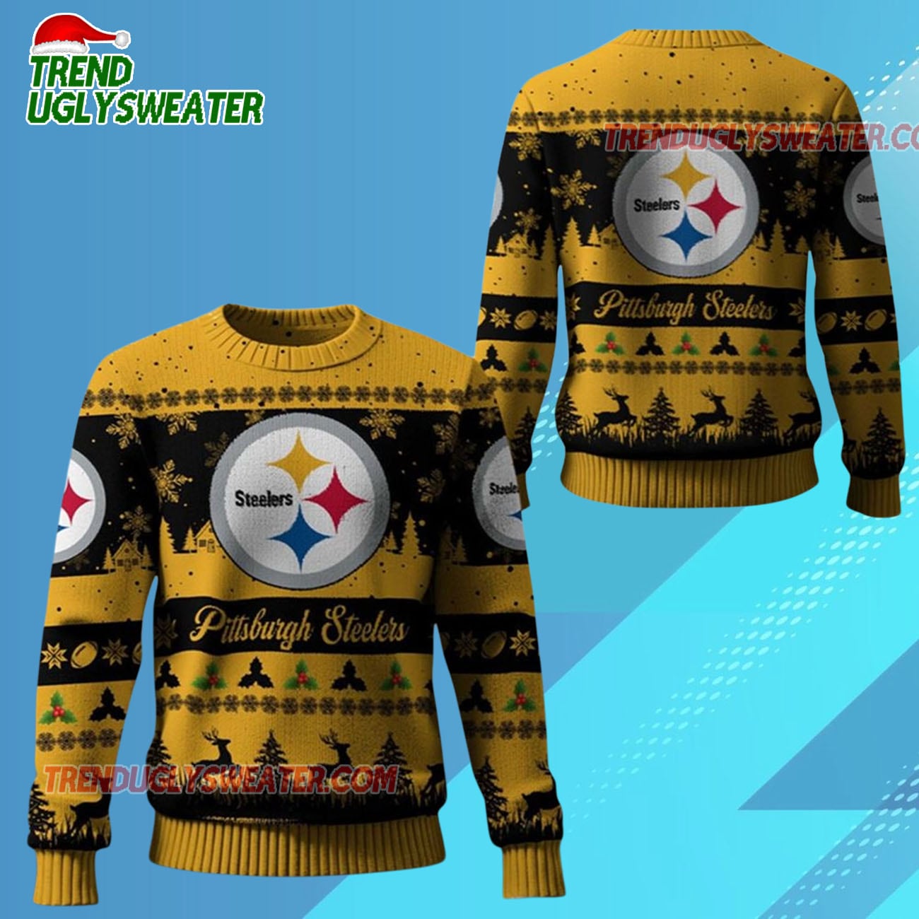 Limited-time offer: Don’t miss out! Visit trenduglysweater.com and order now to secure your 2025 Christmas Steelers Festive Reindeer Tree Ugly Sweater before the season kicks off — quantities are limited!