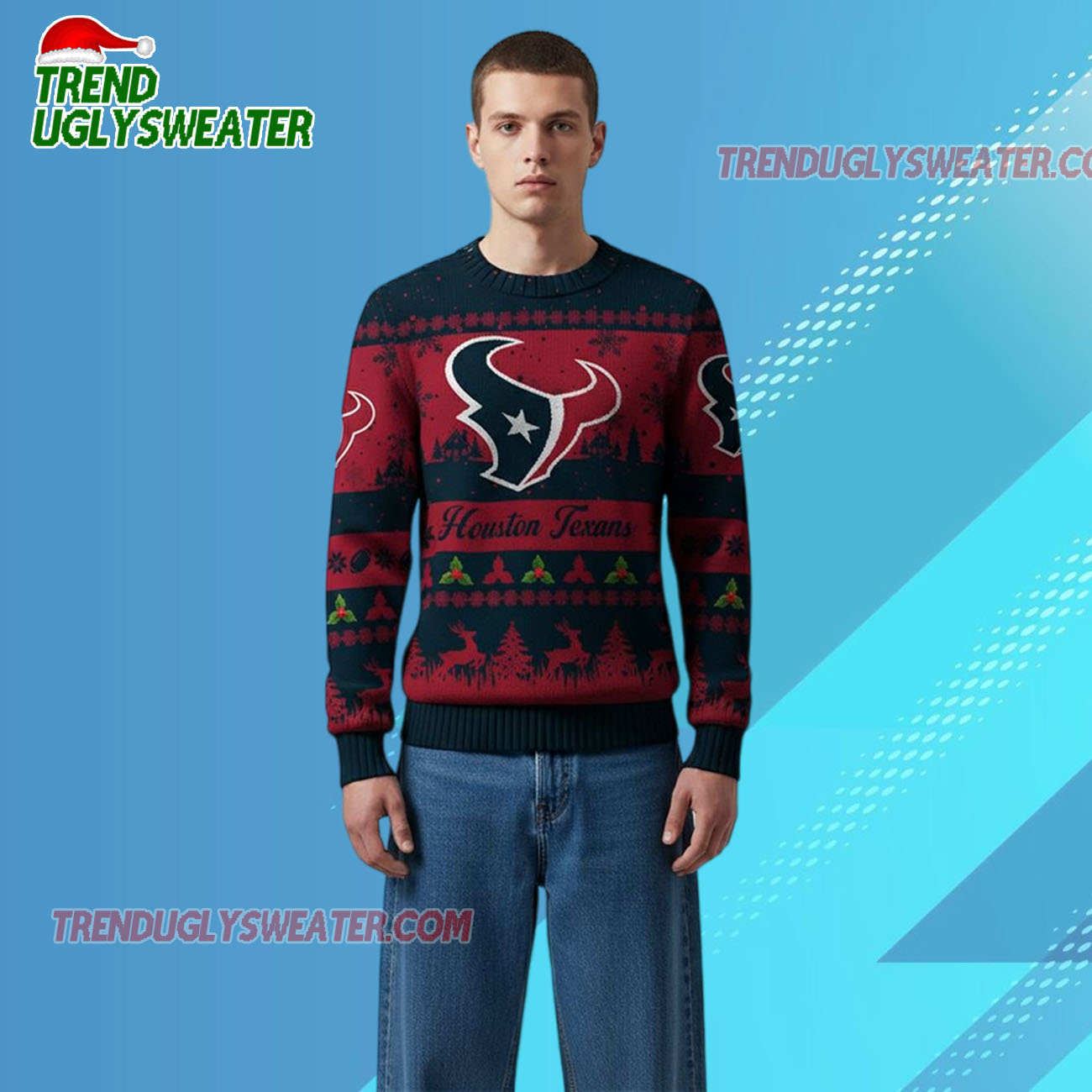 Quality is paramount, and the 2025 Christmas Texans Festive Reindeer Tree Ugly Sweater doesn’t disappoint. Made with the softest materials that ensure maximum comfort, this ugly sweater is perfect for long game nights or relaxed days at the beach. The cozy fabric is perfect for cooler evenings, offering warmth without sacrificing style. Whether you’re at a football game, hanging out with friends, or cheering from the couch, this sweater will keep you feeling comfortable and confident all day long.
