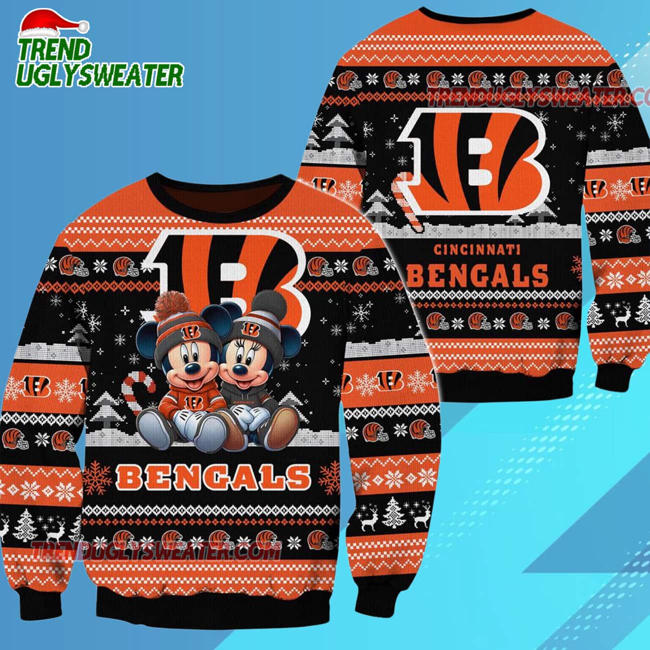 Limited-time offer: Don’t miss out! Visit trenduglysweater.com and order now to secure your Cincinnati Bengals NFL Mickey Minnie Ugly Christmas Sweater before the season kicks off — quantities are limited!