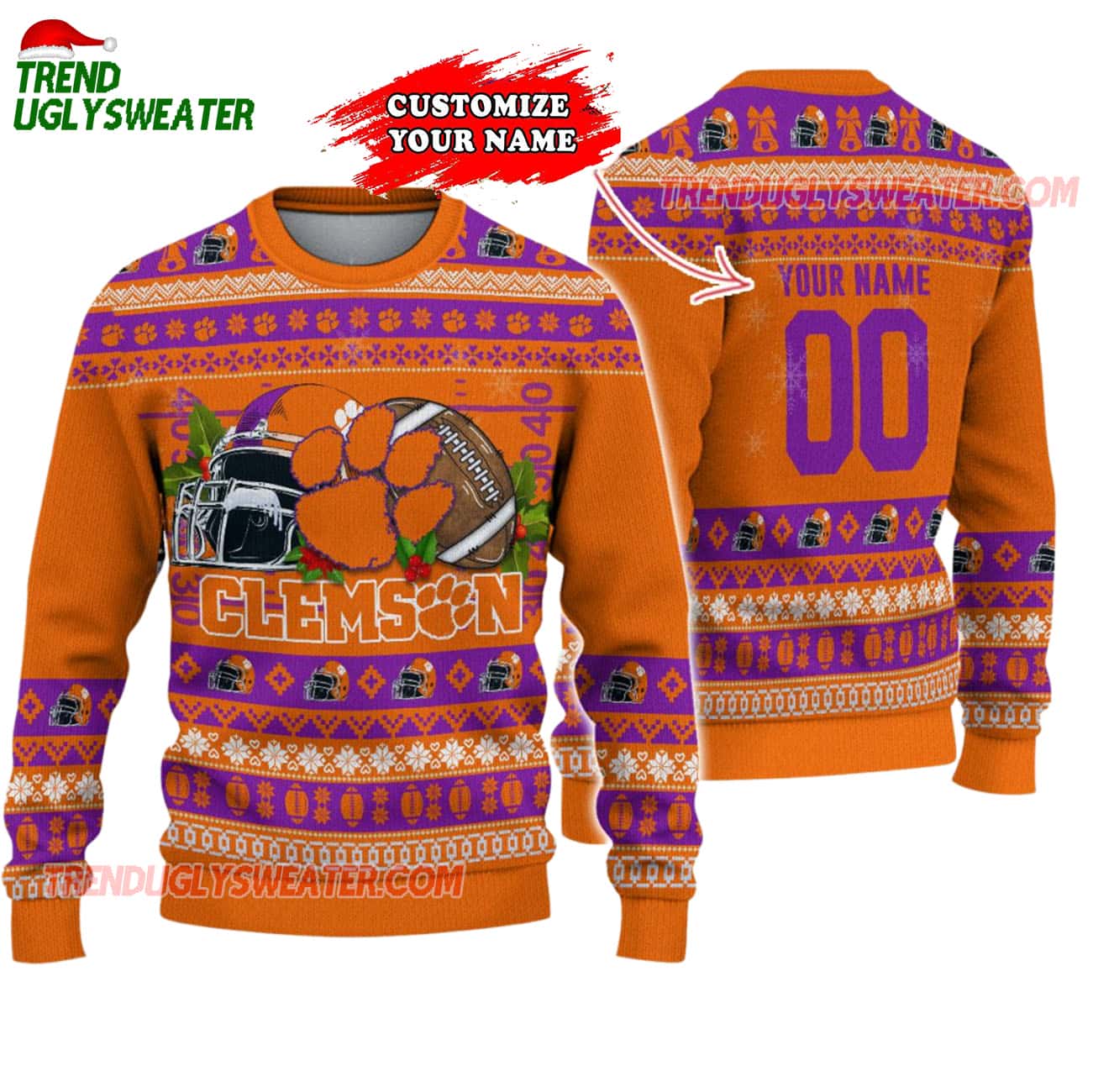 Limited-time offer: Don’t wait! Visit trenduglysweater.com and get your hands on the Custom Clemson Tigers Logo Team Football Christmas Ugly Sweater now — before it’s gone! Show your team pride today with a sweater that’s as bold as your fandom.