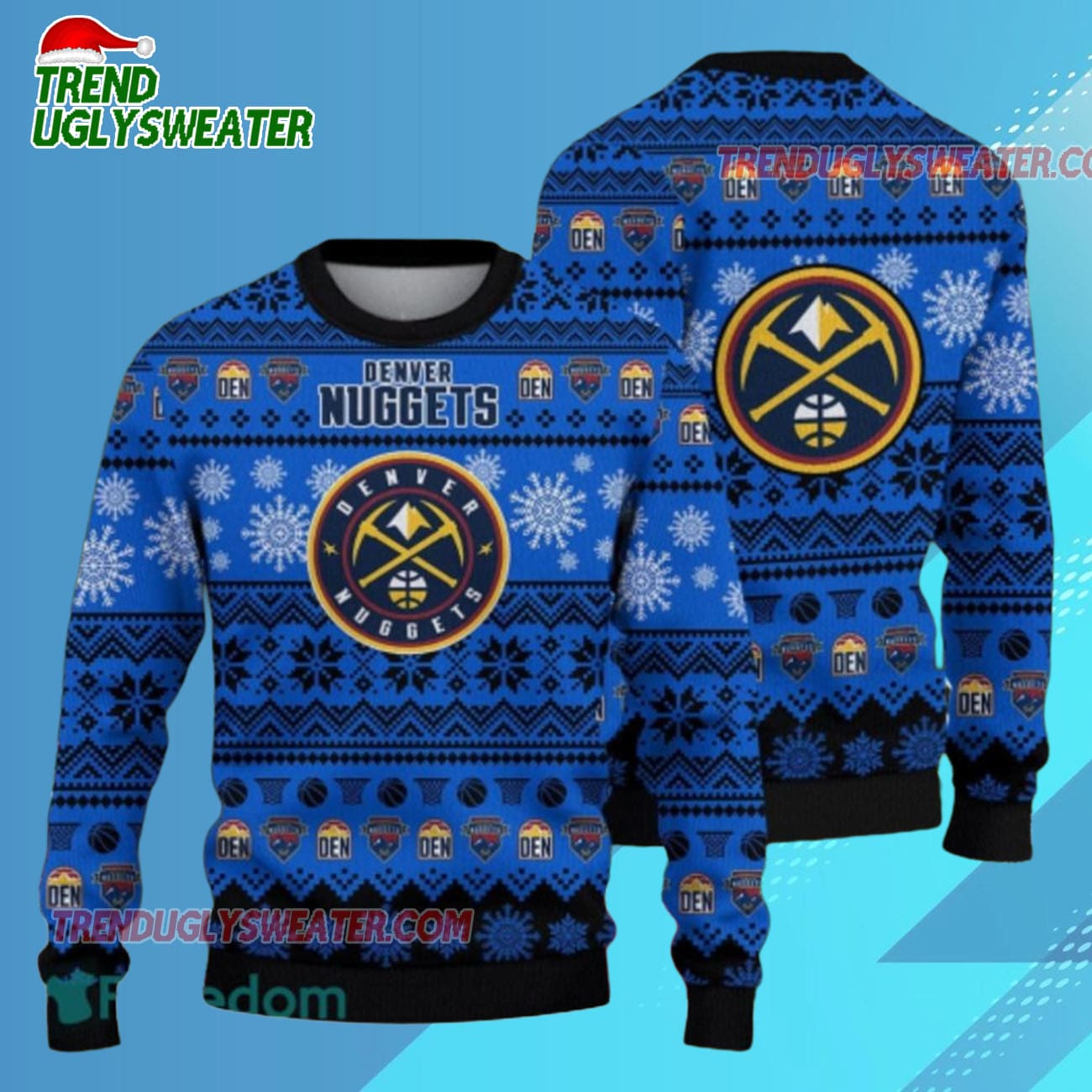 Limited-time offer: Visit trenduglysweater.com now to order your Denver Nuggets Snowfall Hoops Ugly Christmas Sweater — stock is limited, so don’t miss out!