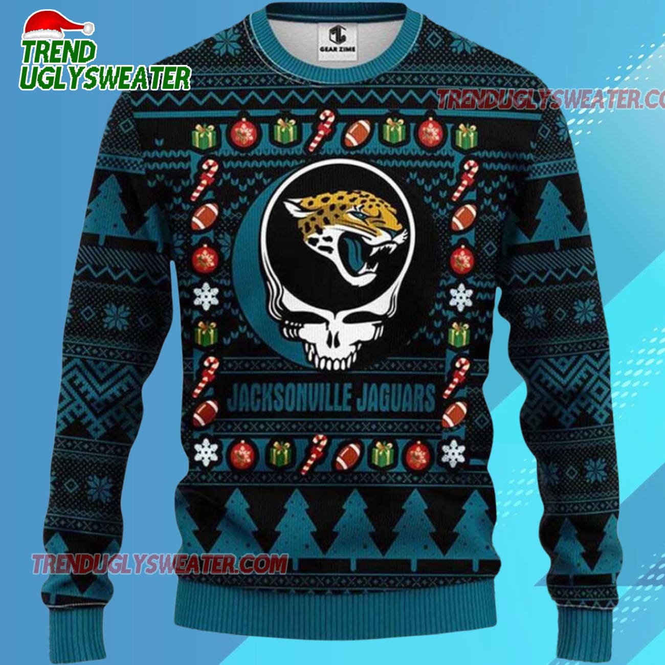 Limited-time offer: Don’t miss out! Visit trenduglysweater.com and order now to secure your Grateful Dead X Nfl Jacksonville Jaguars Stealie Logo Ugly Christmas Sweater before the season kicks off — quantities are limited!