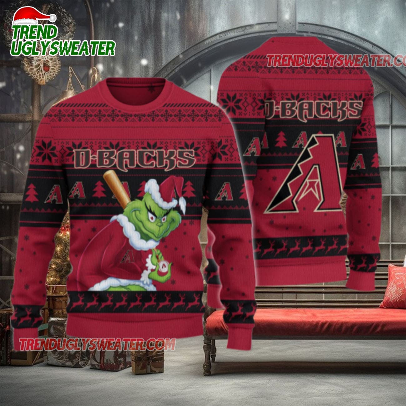 Limited-time offer: Hurry and visit trenduglysweater.com to grab your MLB Arizona Diamondbacks Grinch Home Run Ugly Christmas Sweater now before they sell out! Show your team spirit in the most stylish way possible with the best ugly sweater for MLB fans!