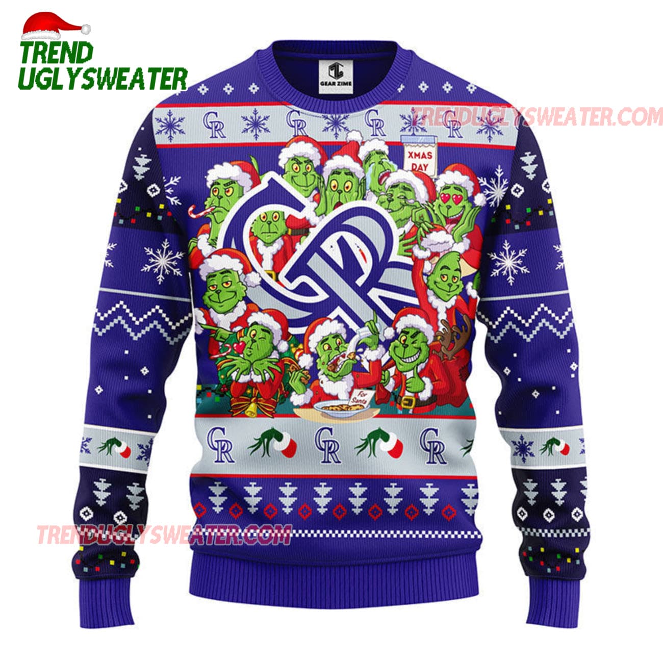 Limited-time offer: Hurry and visit trenduglysweater.com to grab your MLB Colorado Rockies 12 Grinch Xmas Day Ugly Christmas Sweater now before they sell out! Show your team spirit in the most stylish way possible with the best ugly sweater for MLB fans!