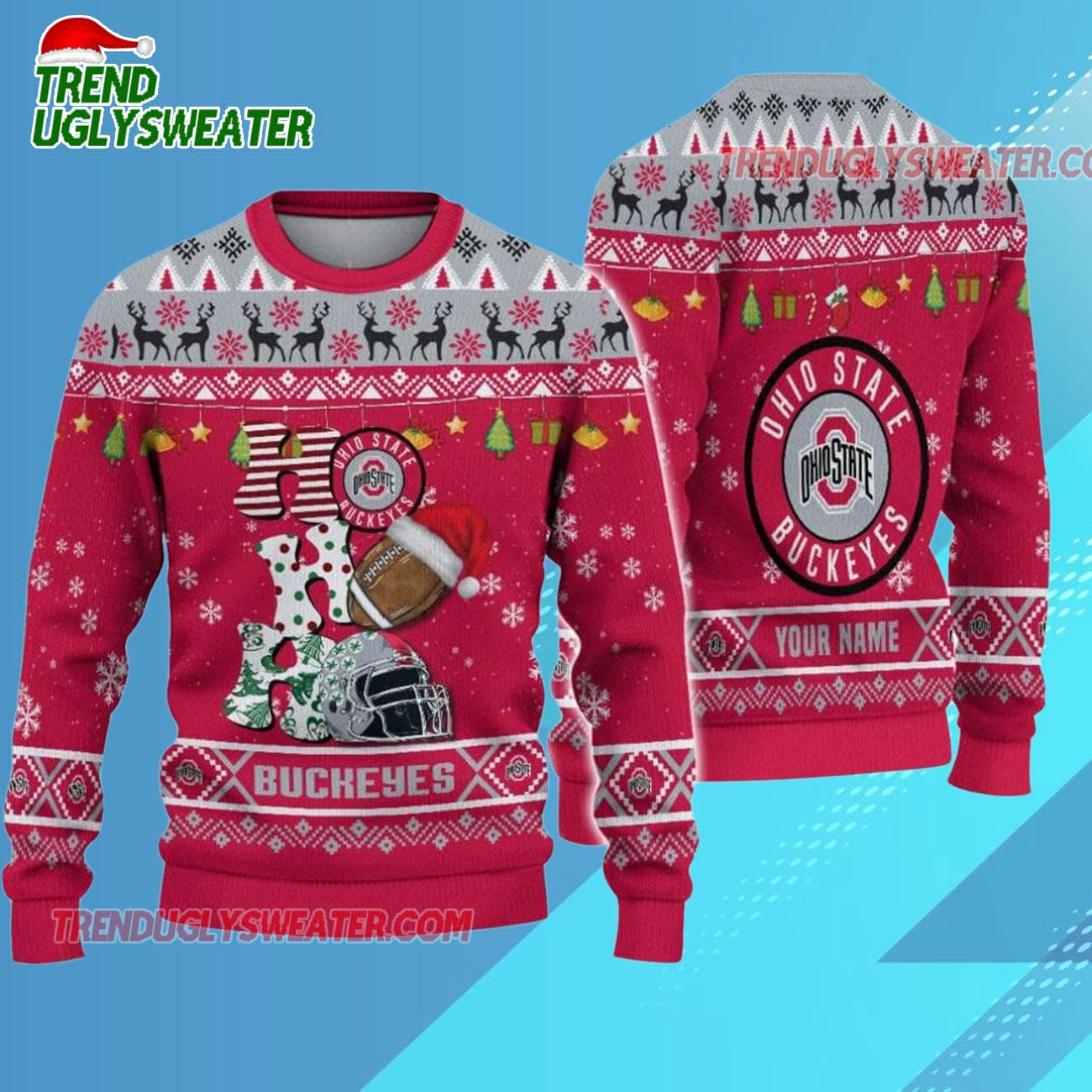 Made from soft, durable materials, the Ncaa Ohio State Buckeyes Football Ho Ho Ho Ugly Christmas Sweater guarantees all-day comfort, whether you’re tailgating at the big game or relaxing at home watching your team take the win. Designed to keep you warm during those chilly game nights, this ugly sweater provides both style and function. With sizes up to 5XL, there’s a perfect fit for fans of all shapes and sizes.