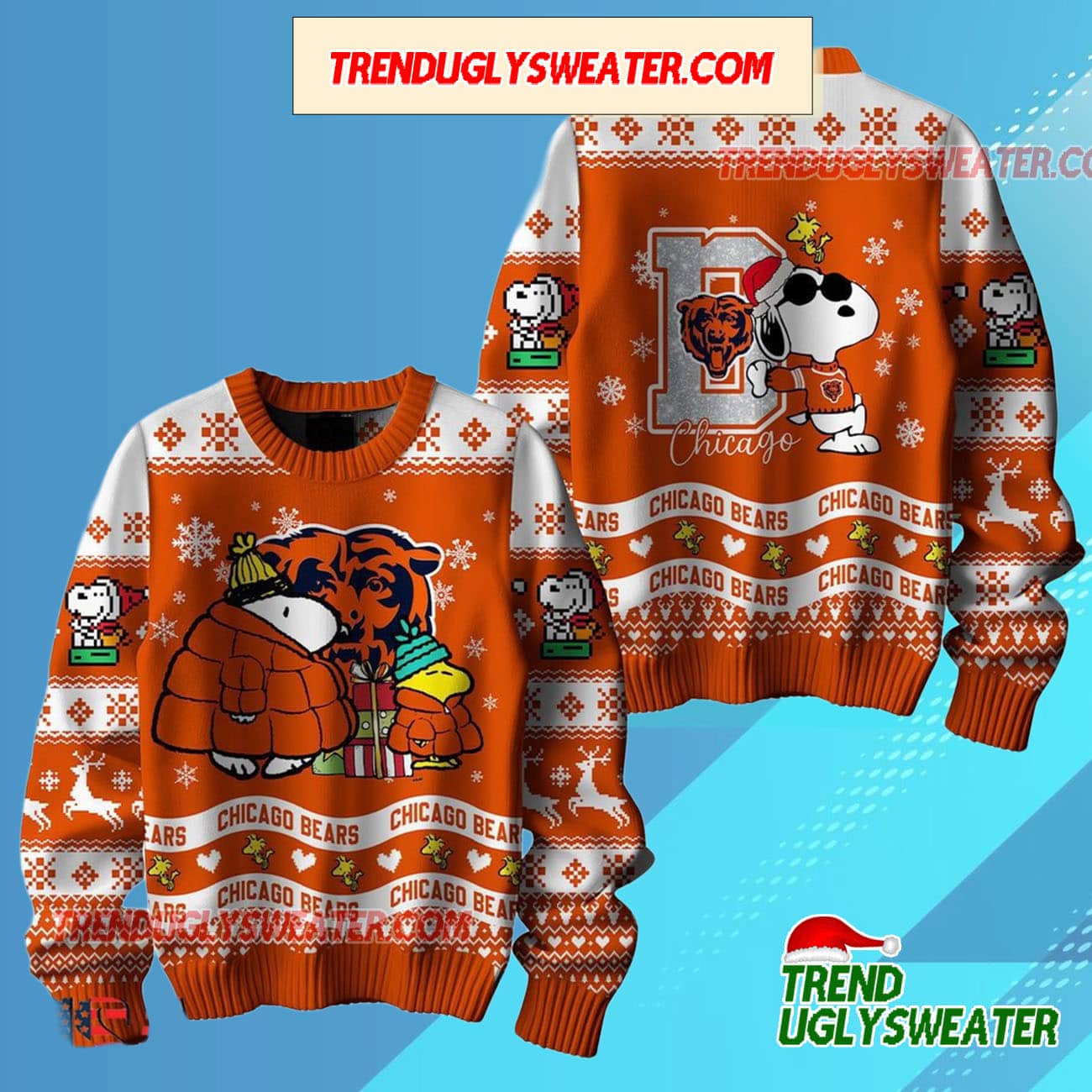 The Nfl Chicago Bears X Peanuts Snoopy New Design 2025 Ugly Christmas Sweater features vivid, high-definition artwork that captures your team’s colors and logo in a way that’s both eye-catching and precise. This isn’t just any sweater — the bold, tropical patterns infused into the design give it a dynamic, fresh look that’s sure to turn heads. Designed for those who aren’t afraid to express their team pride, this ugly sweater brings the heat to every event, making it the perfect addition to your wardrobe.