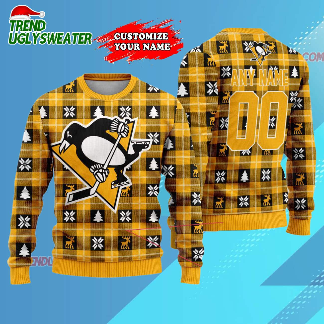 👉 Order your NHL Pittsburgh Penguins Personalized Snow Tree Ugly Christmas Sweater today and be game-day ready in style!