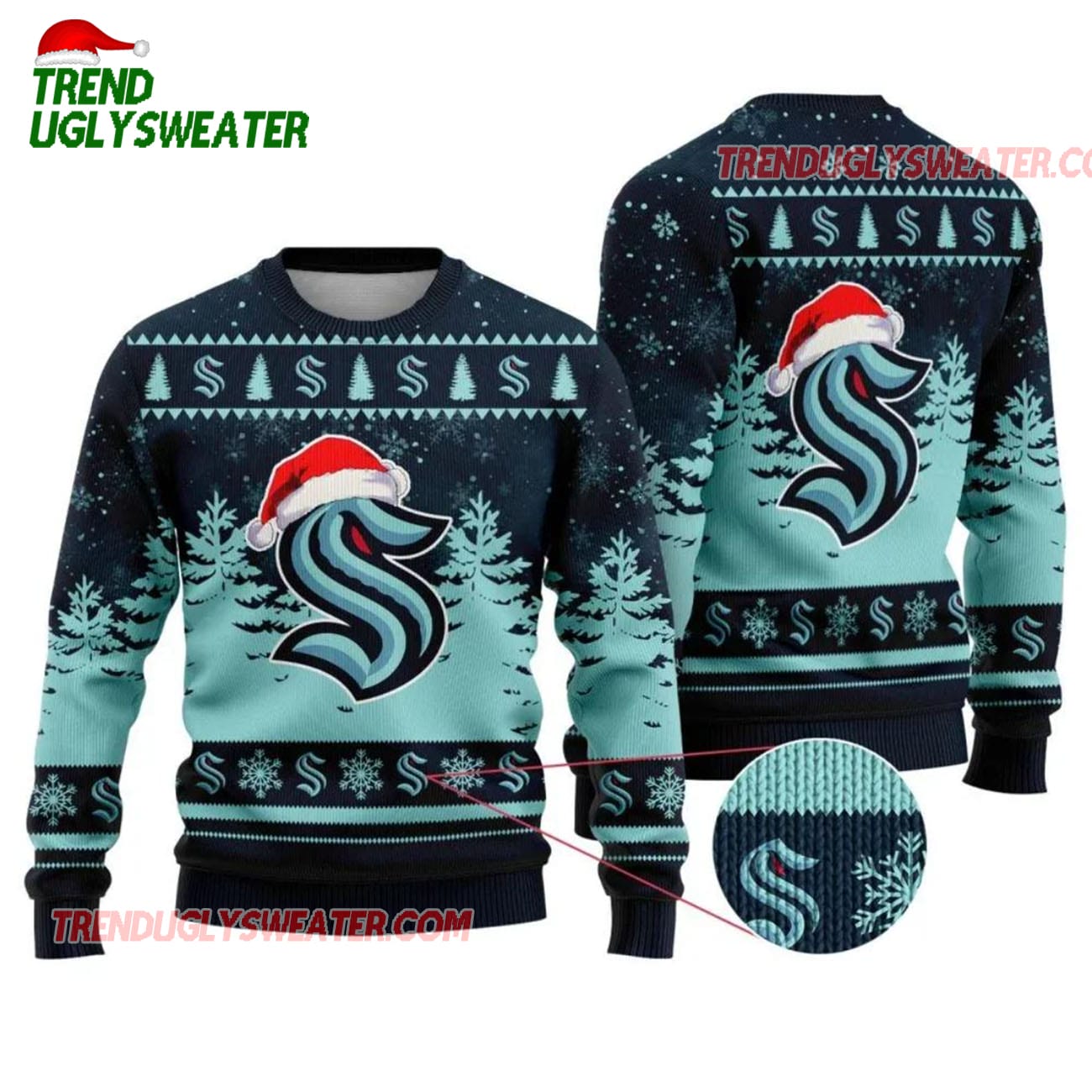 👉 Order your NHL Seattle Kraken Santa Hat Ugly Christmas Sweater today and be game-day ready in style!